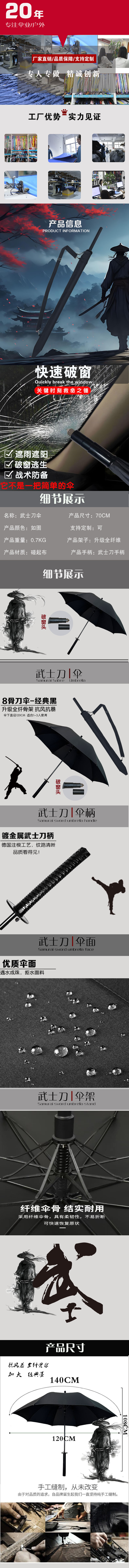 武士傘破窗自救神器 70*8K 超大傘面 長柄武士刀造型應急雨傘